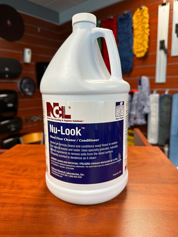 NU-LOOK™ is a neutral range pH formula that cleans and conditions wood floors to restore their natural beauty and luster. NU-LOOK™ uses specially selected, naturally derived ingredients to gently remove soils from the wood surface. Regular use of NU-LOOK™ creates a dirt resistant barrier and makes wood surfaces more resistant to water damage. Regular use of NU-LOOK™ brings out the natural color and beauty of wood floors while it improves slip resistance. NU-LOOK™ is pleasantly scented to deodorize as it cleans!