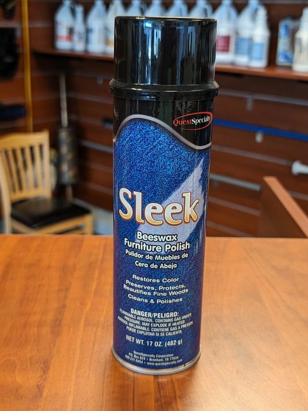 SLEEK cleans away dust, dirt, fingerprints and smudges from all types of wood surfaces. It restores color and high luster to fine woods without the rubbing required with paste wax while eliminating scratches and blemishes.